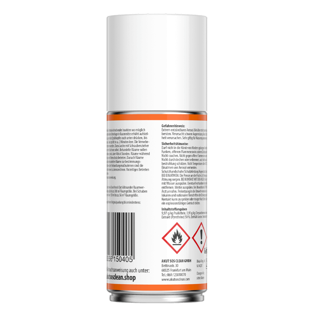 Fenster, Türen usw. schließen. Verstecke kriechender Insekten wo möglich freilegen. Dose auf unempfindlicher Unterlage in Raummitte erhöht aufstellen. Ventil arretieren. Dazu Lasche des Sprühkopfes nach unten drücken, bis sie einrastet. Raum verlassen. Dose sprüht in ca. 2 Minuten leer. Die Vernebelung kann jederzeit unterbrochen werden. Dazu Lasche mit Schraubenzieher o.ä. entriegeln. Der Nebel verteilt sich von selbst. Behandelte Räume sollen über Nacht geschlossen bleiben, mind. aber 4 bis 6 Stunden. Räume während der Einwirkzeit des Mittels nur mit Atemschutz betreten. Danach Räume 1 Stunde lüften, dann sind die behandelten Räume zur bestimmungsgemäßen Nutzung frei. Während der Behandlungsmaßnahmen sind die Räume/Läger mit einem Warnhinweis zu kennzeichnen. Vorzeitiges Betreten durch Unbefugte ausschließen.