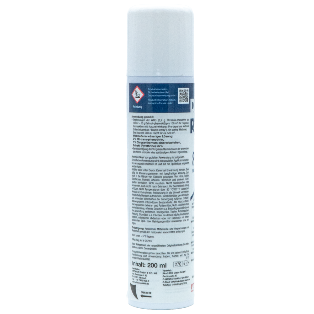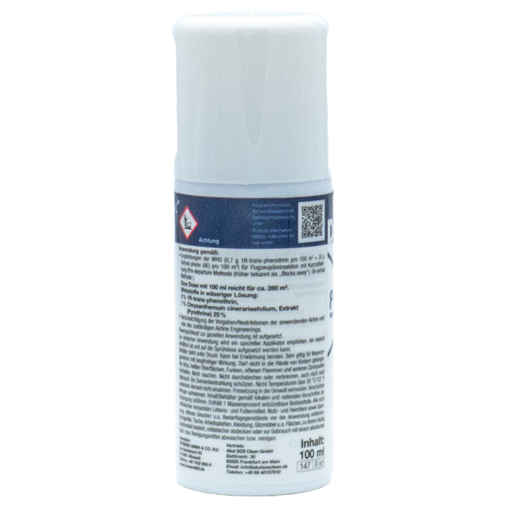 Das Produkt wirkt durch direkten Kontakt und Flächenbelag – mit starker Sofortwirkung und Austreibeffekt. Es entspricht den WHO-Empfehlungen für die Kurzzeitdesinsektion in Passagier- und Frachtflugzeugen (Blocks away, Top-of-descent, Pre-flight, Pre-Embarkation) und wird zur Vorbeugung gegen die Ausbreitung vektorübertragener Krankheiten eingesetzt (z. B. Dengue, Zika, Chikungunya, Malaria).