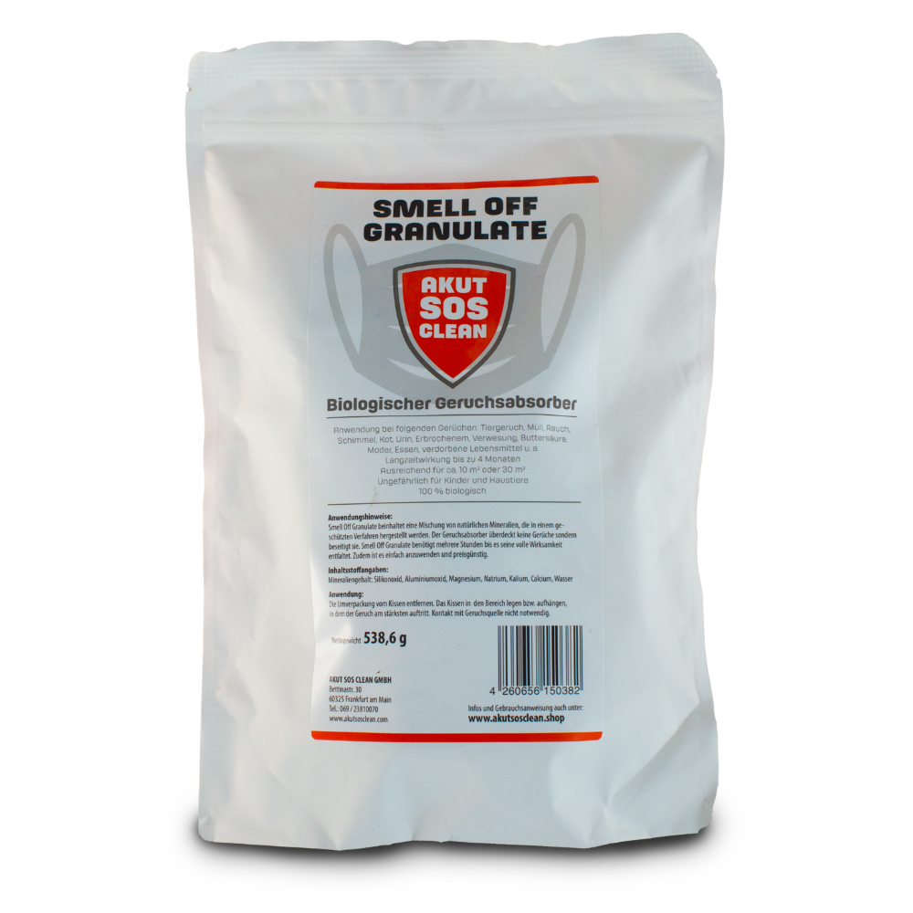 Anwendung bei folgenden Gerüchen: Tiergeruch, Müll, Rauch, Schimmel, Kot, Urin, Erbrochenem, Verwesung, Buttersäure, Moder, Essen, verdorbene Lebensmittel u. a. Langzeitwirkung bis zu 4 Monaten.
