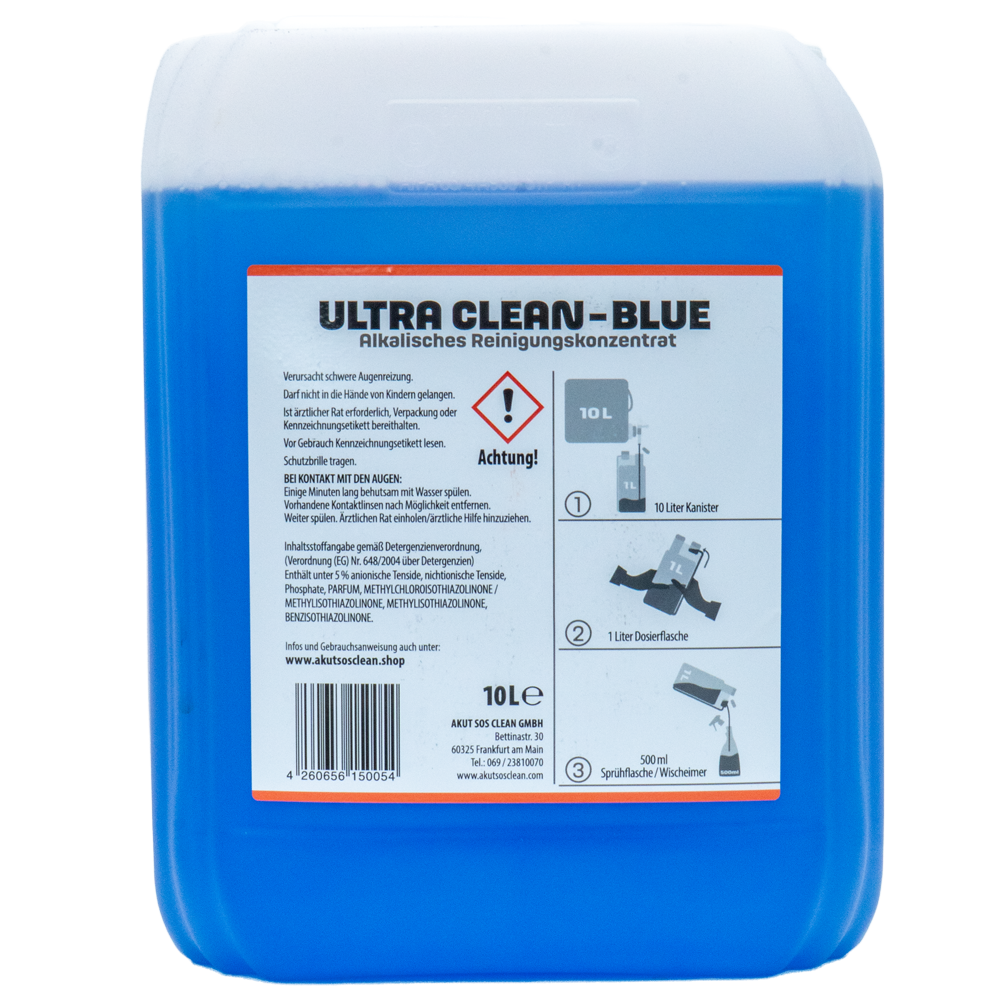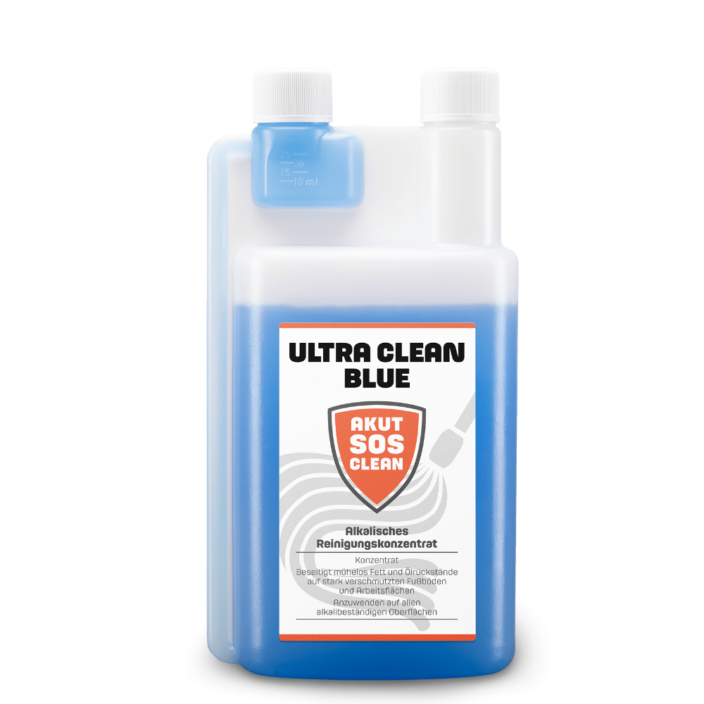 Ultra Clean Blue ist ein Hochleistungskonzentrat für sämtliche Hartbodenbeläge, elastische Bodenbeläge, Oberflächen und Gegenstände in der Unterhaltsreinigung manuell, maschinell und im Spray- Cleaner-Verfahren anwendbar. Höchste Anwendersicherheit. Dosierempfehlung: ½ Dosierkappe (12 ml) Konzentrat für 500 ml Wasser