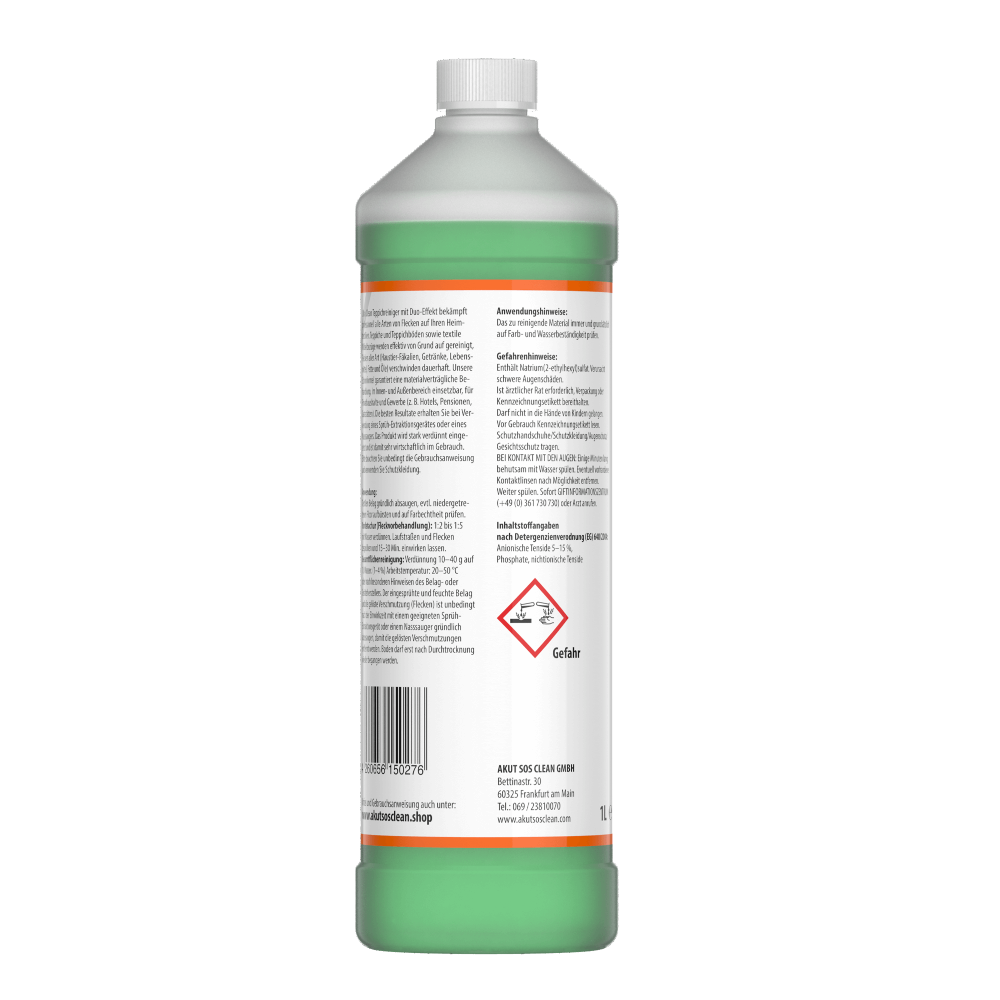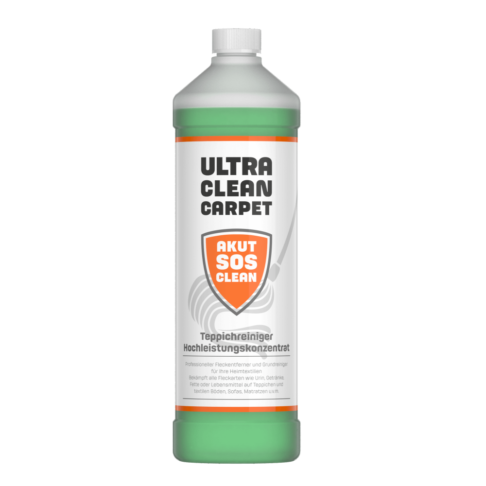 Ultra Clean Teppichreiniger mit Duo-Effekt bekämpft professionell alle Arten von Flecken auf Ihren Heimtextilien. Teppiche und Teppichböden sowie textile Möbelbezüge werden effektiv von Grund auf gereinigt, Flecken aller Art (Haustier-Fäkalien, Getränke, Lebensmittel, Fette und Öle) verschwinden dauerhaft. Unsere Schonformel garantiert eine materialverträgliche Behandlung. Im Innen- und Außenbereich einsetzbar, für Privathaushalte und Gewerbe (z. B. Hotels, Pensionen, Gaststätten). Die besten Resultate erhalten Sie bei Verwendung eines Sprüh-Extraktionsgerätes oder eines Nasssaugers. Das Produkt wird stark verdünnt eingesetzt und ist damit sehr wirtschaftlich im Gebrauch. Bitte beachten Sie unbedingt die Gebrauchsanweisung und verwenden Sie Schutzkleidung.
